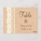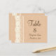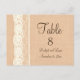 Esta es la postal del número de la tabla de coordinación para la línea boda Ivory Lace & Light Burlap. También está disponible en encaje blanco. Nota: el encaje es un ilustracion fotográfico.