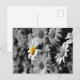 Postal margarita amarilla en un mar de margaritas negras