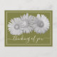 Fotografía impresionante en blanco y negro que presenta un recorte de primer plano de tres hermosas Margaritas Gerbera contrastadas con un fondo verde. Esta tarjeta postal se ofrece en varios colores de fondo diferentes. Las margaritas cubren la parte frontal de esta tarjeta postal floral en blanco que se puede utilizar como tarjeta de agradecimiento, tarjeta de cumpleaños o cualquier otra tarjeta de su elección. ¡Personalízala con tu texto y/o imágenes para hacerla única!