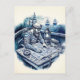 Postal Marinero leyendo un mapa náutico en la cubierta de