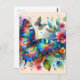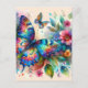Postal Mariposa acuarela Flores Florales Rosa Azul