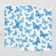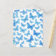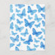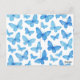 Moto de mariposa azul con alas ventiladas y dispersas sobre un fondo oscuro; un patrón vibrante inspirado en la naturaleza ideal para la primavera