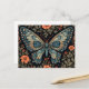 Una hermosa mariposa azul entre flores naranjas, en un estilo William Morris en esta postal con aspecto vintage. Perfecta para cualquiera que ame las flores y la naturaleza.