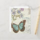 © Pela Studio / Wild Apple. Una mariposa azul y marrón con una flor morada. En el fondo, una silueta de mariposa se combina con las palabras francesas.
