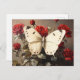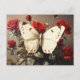 Postal Mariposa Blanca descansando entre rosas rojas vibr