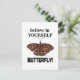 Mariposa cree en ti misma mariposa diseño original de postales de Nisha Prabhu. Descubre tus alas interiores con nuestra postal de mariposa "Créate en ti mismo"! Abran el poder de la autocreencia con esta postal de diseño hermoso, con una mariposa vibrante que simboliza la transformación y el crecimiento. Perfecto para enviar un mensaje motivador a amigos, familia o incluso a ti mismo, esta postal sirve como un recordatorio diario para que tus alas y el ruido se extiendan a nuevas alturas.