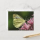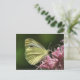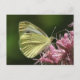Esta postal contiene una hermosa mariposa de azufre que aterrizó en la hierba rosa Joe Pye cerca de mi estanque. Tiene alas amarillas pálidas con una mancha negra y se destaca en el fondo verde luminoso.