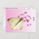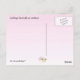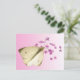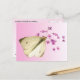 Esta postal contiene la exquisita mariposa de col (Pieris rapae). Ella ha dejado de coquetear alrededor del jardín lo suficiente como para apostarse en una flor de verbena. Tiene un cuerpo negro que no se muestra debajo de sus cuatro alas blancas, cada una con un punto negro en el centro. Las dos alas superiores tienen una banda negra en la punta. Su cara es verde pálido. Aunque es una criatura encantadora y delicada, sus orugas devoran cabañas y otros miembros de la familia de verduras de brassica. El reverso tiene una pequeña mariposa sobre un fondo de gradiente rosa pálido.