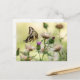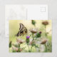 Una imagen cálida y tranquila de una mariposa gigante de cola de toro en una flor de cardo morado resalta esta maravillosa carta.