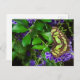 Verde y gentil esta mariposa malaquita posa sobre una flor morada en Butterfly Wonderland. Foto de Ruth Jolly.