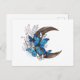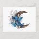 Postal Mariposas azules sobre la media luna de madera