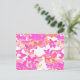 Una bandada de mariposas en tonos rosas, fucsia, orquídea y naranja de coral sobre un fondo blanco cremoso