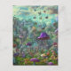 Fantasía artística postcard presenta una escena surrealista de setas y mariposas generada por IA.