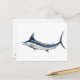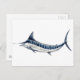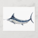 Marlin azul (Makaira nigricans). Este pez es muy buscado por los pescadores deportistas. Su llena se de cuerpo de brillantes cuando está emocionado. Diseño original: acuarela sobre papel por Chloé Yzoard