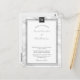 Una simple pero hermosa invitación a la boda en blanco y negro. En un fondo de mármol, este diseño minimalista es elegante por su sencillez. Un emblema ornamentado en la parte superior es donde pondrás tu inicial de tu nuevo apellido. Si buscas una invitación de boda con RSVP para ayudarte a ahorrar dinero, aquí está. En la parte posterior puede poner su dirección de retorno, un mensaje personal y también dar a sus invitados la información de su sitio web. En su sitio web, pueden recibir confirmación. Eso te ahorra dinero. Una manera fantástica de economizar y aún así tener una bella invitación a una boda. Si lo prefiere, también puede listar un número de teléfono y su contacto de correo electrónico para más opciones de cómo pueden contactarte sobre su próximo boda. Si necesita ayuda para personalizar esto, póngase en contacto con uno de nuestros equipos de diseño haciendo clic en el botón de abajo o a través del enlace de nuestro perfil.