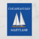 Arte náutico de un velero navegando a orillas del mar de la bahía de Chesapeake en Maryland. Una idea de regalo perfecta para los marineros o para los aficionados a la vela. ¿Te encanta navegar? El diseño de vela perfecto para un capitán.