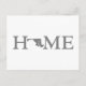 Al mostrar la palabra home en grandes letras en negrita con la letra O reemplazada por la silueta de contorno de la forma de mapa del estado de Maryland con un fondo gris sólido, esta postal marylander del estado de la palabra art es una manera perfecta de mantenerse en contacto con cualquiera de Maryland.