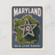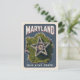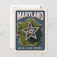Celebrate the history of the Old Line State with this unique, vintage-style travel postcard for Maryland! The design showcases a striking aerial view of a star-shaped fort, reminiscent of the iconic Fort McHenry in Baltimore, which inspired "The Star-Spangled Banner." This retro illustration perfectly captures a key piece of Maryland's heritage and its connection to the Chesapeake Bay. With the bold text "MARYLAND OLD LINE STATE," this postcard is a perfect souvenir for history buffs, military enthusiasts, Baltimore visitors, and collectors of classic American travel posters.