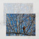 Fotografía de un Robin estadounidense mirando mientras está encaramado en una rama de árbol. Las ramas de los árboles dan un aspecto abstracto con líneas blancas y grises que se extienden por todo el fondo azul del cielo. Derechos reservados ©2021 Kimberly J Tilley.