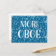Un diseño divertido y alegre de Más Oboe que presenta un fondo azul con texto blanco y notación musical.