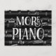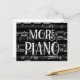 Un diseño Más Piano ordenado que presenta efecto de pizarra con fondo de partitura de notación musical en negro y blanco.