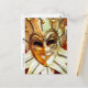 El oro y el bufón veneciano blanco del carnaval enmascaran, adornado con las campanas y las notas de la música. Las máscaras venecianas se pueden hacer del cuero, porcelana o con la técnica de cristal original. Las máscaras originales eran bastante simples en el diseño, decoración, y tenían a menudo una función simbólica y práctica. Hoy en día, la mayor parte de les hacen con el uso de la hoja del gesso y de oro y son todos pintados a mano usando plumas y gemas naturales para adornar. Foto por Mike Gnuckx