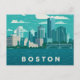 “Boston Skyline Art – Retro City Illustration, Massachusetts Night Cityscape, Urban Travel Decor Design“
