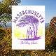 Celebre las raíces históricas de Massachusetts con este diseño que presenta "The Bay State" y "Est. 1788." Una figura de la era colonial con un largo rifle se encuentra bajo un árbol, evocando el espíritu de la Revolución Americana y el papel vital del estado en la historia de EEUU. Perfecto para coleccionistas de postales de época y aficionados a la historia americana.