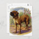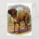 Ilustracion vintage de una mastiff frente a su casa de perros