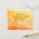La postal cristiana inspiradora representa una escritura motivadora sobre un diseño de acuarela abstracta con girasoles blancos simples y un fondo amarillo y naranja. Presenta una parte de las Beatitudes que Jesús habló en el Sermón del Monte y que grabó en la Biblia Verso Mateo 5:8, "Benditas son las PURAS en el CORAZÓN, porque verán a Dios". La plegaria trasera se puede personalizar según los detalles de su elección.