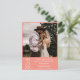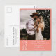 Esta hermosa postal es la manera perfecta de hacer que sus amigos y familiares sepan de su próximo boda. Presenta un diseño minimalista sencillo con un diseño artístico, moderno y elegante, incluyendo su foto en un fondo rojo rosa coral o salmón con un texto simple que contiene toda la información vital.