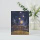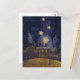 Decoración de un buzón de amigos con un poco de fantasía con esta postal con una original pintura nocturna de una chica parada en el techo de una piedra de color en Nueva York con su perro colgando estrellas en un cielo azul de medianoche. A quien le gusten las pinturas y la ciudad de Nueva York le encantará esta postal artística.