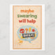 This is a postcard in the style of a cutout paper collage that reads, "Maybe swearing will help."