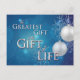 Gran regalo, Regalo de vida, donante, postal de Navidades - postal de doble cara. No hay mayor regalo. El Regalo de la Vida bendice a miles de personas cada año a través de órganos, ojos y tejidos trasplantados. Los que han elegido dar el Regalo de la Vida no son solamente héroes, son ángeles. Digan "Feliz Navidad", "Feliz Hanukkah", o simplemente "Felices Fiestas" con una hermosa tarjeta que expresa su gratitud por los que han dado el Regalo de la Vida. Te deseo una gran alegría esta temporada de fiestas, de Kristin y Steve en KNS Transplant Gear y tu tienda de tarjetas KNS.