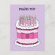 Una gran tarta de cumpleaños personalizado cubierta de velas encendidas, colocada sobre un fondo malva. Las palabras 'Mazel Tov' están por encima del pastel.