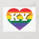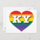 Esta postal presenta un corazón con un diseño de orgullo arco iris y las letras mayúsculas en negrita, blancas, KY, la abreviatura oficial de Kentucky, el estado de bluegrass. El reverso de la tarjeta está en blanco, esperando tu texto personalizado o tus sentimientos escritos a mano. Muestra tus verdaderos colores, apoya el matrimonio igualitario y celebra el orgullo gay.