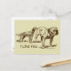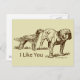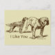 Perro Sniffs Butt Humor. English Setter olía el trasero de un Bulldog con el eslogan "I Like You". Divertido ilustracion gráfico de perros.