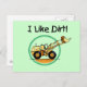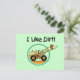 Cargador frontal amarillo y texto que dice "¡Me gusta la suciedad!" en el diseño de la construcción de camisetas, tazas, tarjetas, carteras, trajes para el cuerpo, cadenas de claves, bolsas de tote y otras prendas y regalos para cargadores frontales.