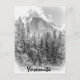 Una fotografía en blanco y negro de la Media Cúpula de Yosemite, captada después de la primera nevada de la temporada. Con el texto agregado "Yosemite", es un regalo perfecto o un recuerdo de una visita a Yosemite.
