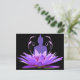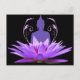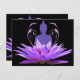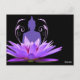 Hermosa imagen de una flor de loto morado sobre un fondo negro con silueta meditación.