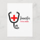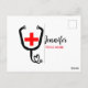 Postal Médico enfermera rojo más estetoscopio añadir nomb