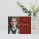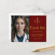 Esta tarjeta de agradecimiento de graduación personalizada de escuela de medicina osteopática de color granate y dorado para un DO o un médico osteópata presenta un símbolo de caduceo médico osteopático y el nombre de su universidad para la clase de 2025. Personalice con su año de graduación para una excelente tarjeta de agradecimiento de graduado universitario personalizada con su foto.