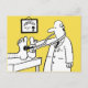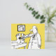 Divertido ilustracion personalizado de un médico usando su estetoscopio en los pies de un paciente. Fondo amarillo.