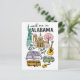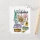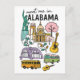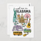 Discover the Heart of Dixie with this charming 'Meet Me in Alabama' postcard, featuring a delightful collection of Alabama icons in a fun doodle style! This whimsical illustrated postcard captures the state's rich history, musical heritage, and pivotal role in the Civil Rights Movement. It showcases everything from the iconic Vulcan statue and the Sloss Furnaces water tower to the State Capitol, blooming cotton, and symbolic buses. The inclusion of guitars highlights Alabama's significant contributions to music. The playful illustrations and clear lettering make this postcard a unique and memorable tribute to Alabama, USA