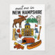 Discover the Granite State with this charming 'Meet Me in New Hampshire' postcard, featuring a delightful collection of New Hampshire icons in a fun doodle style! This whimsical illustrated postcard captures the state's rugged natural beauty, rich history, and beloved symbols. It showcases everything from a majestic moose and snow-capped mountains to a quaint covered bridge, maple sugaring buckets, and a nod to the iconic Old Man of the Mountain. The playful illustrations and clear lettering make this postcard a unique and memorable tribute to New Hampshire, USA.