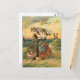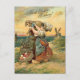 ¡Los mejores deseos de Pascua! es el saludo Una escena costera vintage muestra a un pequeño chica holandés mientras ella arregla un arco en una oveja, una canasta de huevos de Pascua a sus pies.