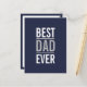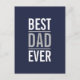 Dile a tu papá cuánto lo amas con la postal azul marino moderna "Mejor Papá Nunca". Esta postal contiene la frase "Mejor Papá Nunca" en negrita blanca y gris moderna sans serif estilo de letra sobre fondo azul marino. Perfecto regalo del Día del Padre para papá. Personalizar fácilmente el color a color de su elección con herramientas de diseño.