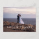 Expresa tu sincero agradecimiento a tus invitados de boda con nuestra Tarjeta Postal de Mensaje de Amor y Agradecimiento para Fotos de Boda Minimalista. Esta tarjeta elegantemente diseñada presenta una plantilla personalizable para tu foto de boda favorita en la parte delantera, junto con un elegante "Amor y Agradecimiento" en una fuente blanca de buen gusto. Personalízala con los nombres de pila de la pareja y la fecha de la boda para un toque clásico.