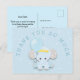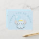 Dales las gracias por tus regalos de ducha de bebé de estilo lindo con este elefante azul dulce y Gracias Tanta curvatura alrededor, que puedes personalizar si es necesario. También puede personalizar con el mensaje que aparece en la parte posterior y los detalles de nombre y dirección del destinatario. También puede cambiar los estilos de fuente y los colores de la parte posterior, así como el color de fondo azul de la parte posterior mediante la opción personalizar adicional.