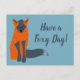 Esta postal está lista para ser personalizada con su propio saludo en letras de escritura gris carbón contra un fondo azul claro al lado del ilustracion zorro. Esta postal personalizado presenta un ilustracion de un zorro melanítico. Este zorro rojo tiene parches de piel de color oscuro. Este ilustracion de estilo dibujado a mano en gris naranja y carbón vegetal representa a un zorro cuya aberración de color de piel lo hace un poco más fresco que tu zorro promedio.
